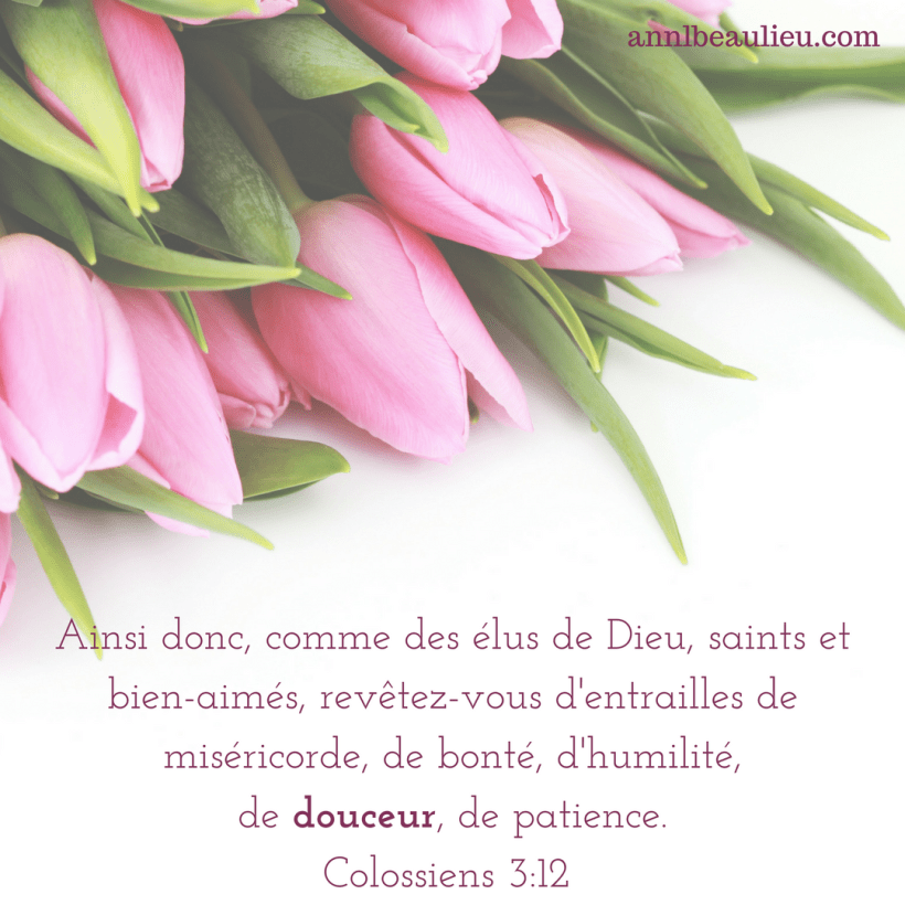 Le mot que Dieu a déposé sur mon cœur pendant mes lectures et prières, c’est {douceur}, tiré d’un verset dans Colossiens.