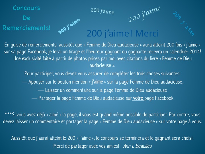 Je suis très contente aujourd’hui de pouvoir vous présenter une partie de mon deuxième livre : « Femme de Dieu audacieuse ». Les éditeurs m’ont donné la permission de mettre sur le blogue une section du chapitre 2, qui parle de notre identité en Dieu. Par le fait même, j’ai fait appel à une sœur pour une traduction libre en anglais puisqu’il n’est pas traduit par la maison d’édition… encore. Haha! On ne sait jamais.